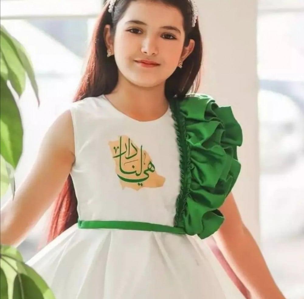 طويل ، وهو مثالي للاحتفال باليوم الوطني السعودي 94 أو اي مناسبة وطنية او عائلة اخرى . مصنوع من أجود أنواع الدانتيل الناعم ليتناسب مع بشرة أطفالك الحساسة، كما يتميز بتصميمه الرقيق الذي يضفي لمسة من الأناقة على مظهرهن.