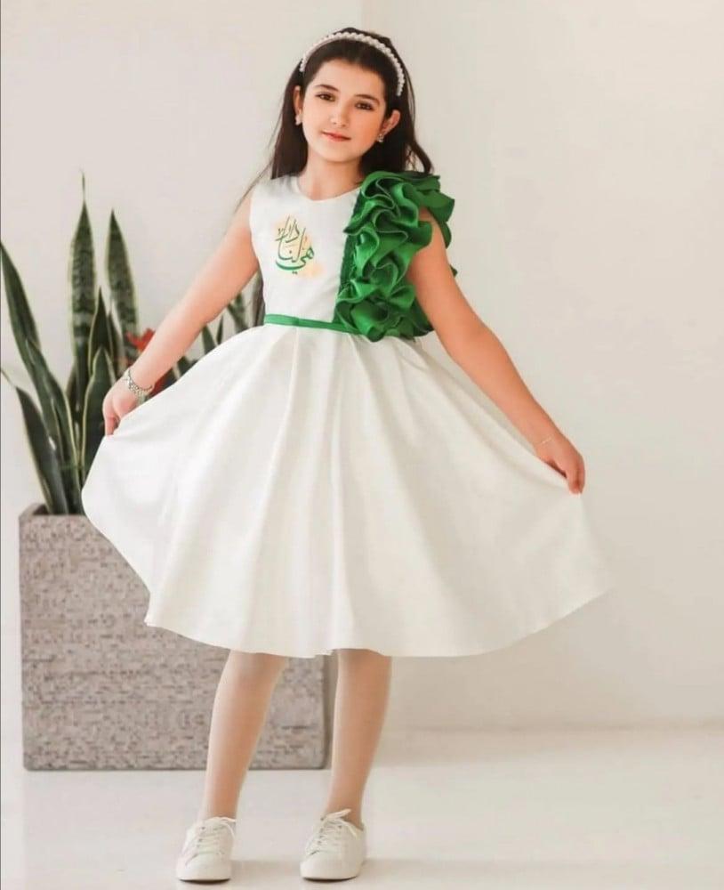 يأتي الفستان بأحجام مختلفة تناسب جميع الأعمار، وهو متوفر بسعر مناسب. على متجر رنا الذهبي اطلبي فستانك الآن واحتفلي باليوم الوطني السعودي 94 مع أطفالك بأجمل مظهر
